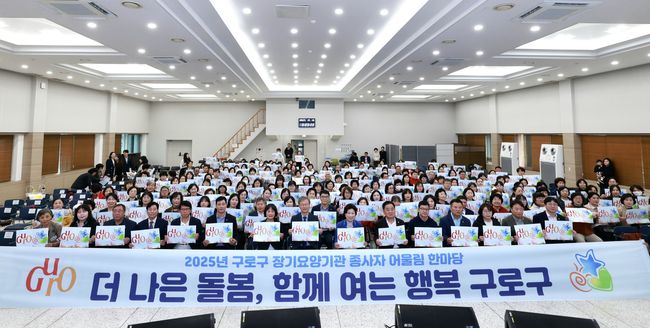 `2025년 구로구 장기요양기관 종사자 어울림 한마당` 참석자들이 기념촬영을 하고 있다.