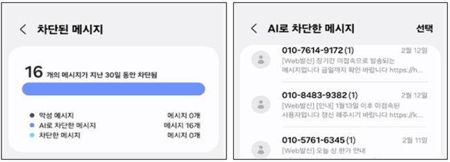 지난해 9월부터 개발을 진행해온 이 기능은 AI가 악성 스팸을 판단해 차단하지만, 사용자는 ‘차단된 악성 메시지’, ‘AI로 차단한 메시지’, ‘내가 차단한 메시지’ 항목에서 원하는 메시지를 선택적으로 확인하거나 차단을 해제할 수 있다.