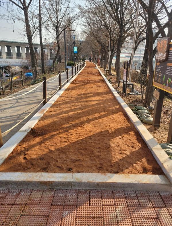 먼저, 황토의 양을 충분히 공급할 수 있도록 황톳길 주변 경계석의 높이를 높이고 더 많은 황토를 포설했다. 황토 입자의 크기는 고운 체로 걸러진 2㎜ 이하 크기로 중금속 오염이 없는 양질의 황토로 채워 양과 질을 모두 높였다.
