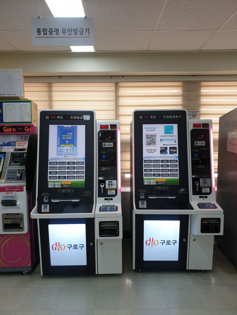한편, 무인민원발급기는 구청을 포함해 구로·개봉·오류·온수·천왕·구일·구로디지털단지역 등 지하철 역사 내 7곳, 16개 동주민센터, 신도림 테크노마트, 구로세무서 등 총 26개소에 32대를 운영하고 있다.