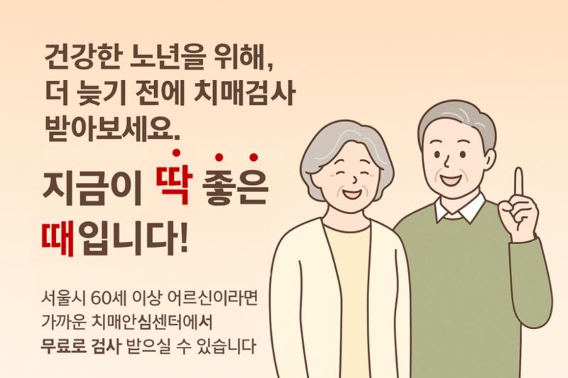 서울시는 2025년 초고령 사회(65세 이상 노인인구가 20% 이상) 진입 예정으로 65세 이상 시민 10명 중 1명이 치매, 10명 중 3명이 경도인지장애를 겪을 것이 예상되는 가운데, 5월 가정의 달을 맞이하여 25개 자치구와 함께 ‘치매 집중 조기 검진’을 실시한다고 밝혔다.