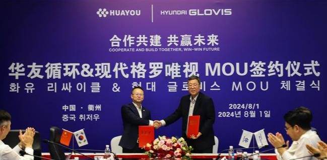 지난 1일 중국 저장성 화유리사이클 본사에서 열린 체결식에는 이규복 현대글로비스 대표와 바오 웨이(BaoWei) 화유리사이클 대표 등 양사 관계자들이 참석해 협력을 약속했다.