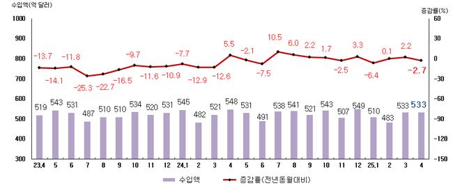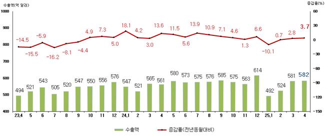 산업통상자원부가 발표한 ‘2025년 4월 수출입 확정치’에 따르면, 수출은 전년 동월 대비 3.7% 증가