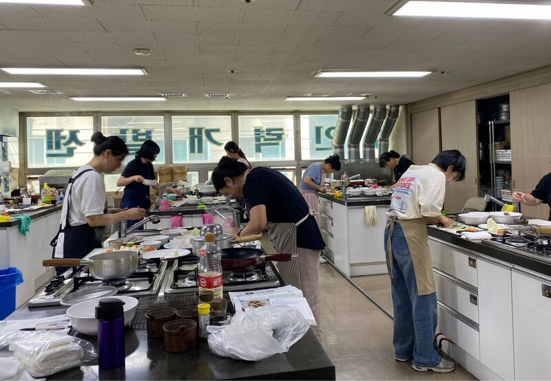 ▶한식조리기능사 자격 취득 수업에서 실습하는 수강생들