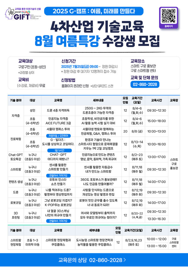 구로구, 4차산업 기술교육 ‘2025 G-캠프 8월 여름특강’ 수강생 모집
