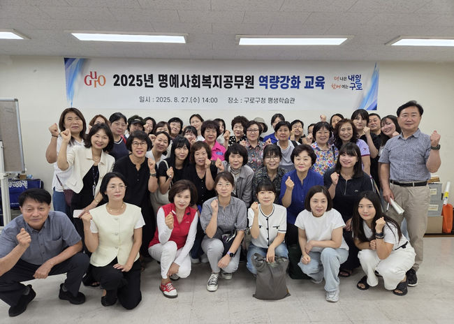 구로구(구청장 장인홍)는 27일 구청 평생학습관에서 명예사회복지공무원 50여 명이 참석한 가운데 복지위기가구 발굴과 지원 체계 강화를 다지기 위한 현장 대응 역량강화 교육을 진행했다고 밝혔다.