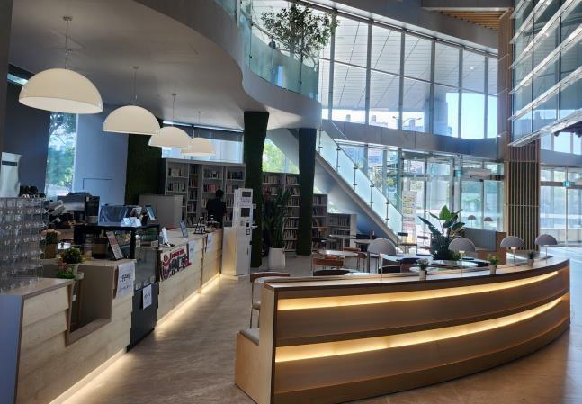 카페 공간은 최근 구청사 1층 로비를 새단장 하면서 북카페 형태의 문화복합 공간으로 조성했다. 직원뿐만 아니라 구민 누구나 차와 독서를 즐기며 편안한 시간을 보낼 수 있다.