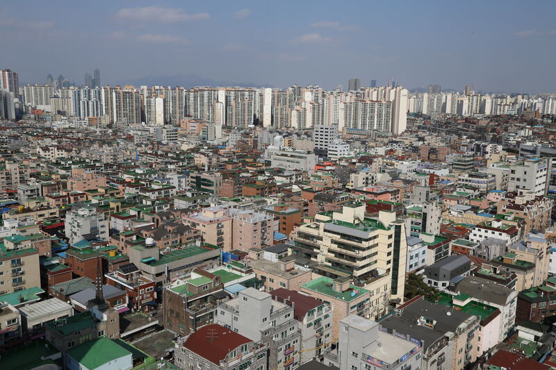 ▶개웅마을(앞쪽)과 개봉2동 아파트단지(뒷쪽)