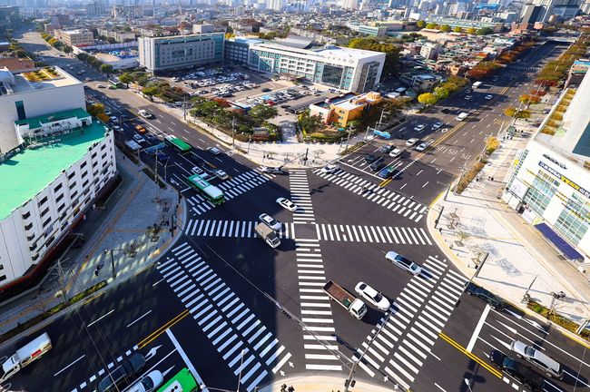 구로구청 사거리에 설치된 `대각선 횡단보도`