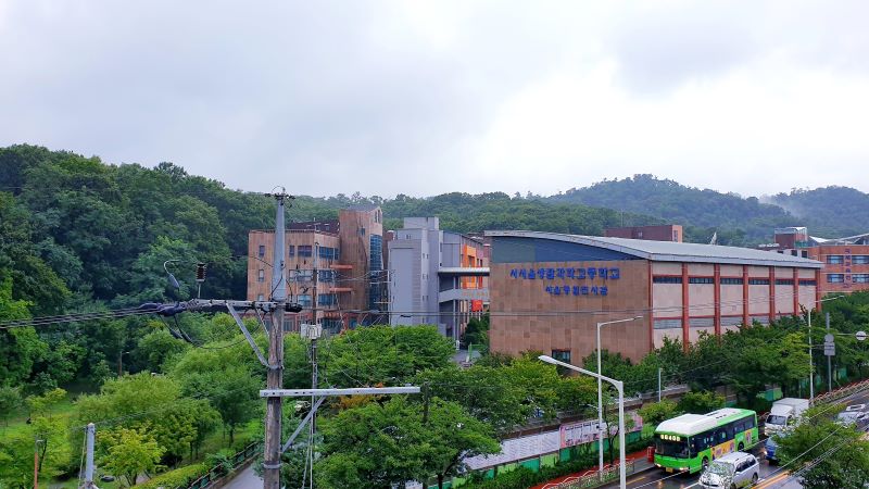 ▶서서울생활과학고교(좌측 산자락이 정선옹주 묘역)