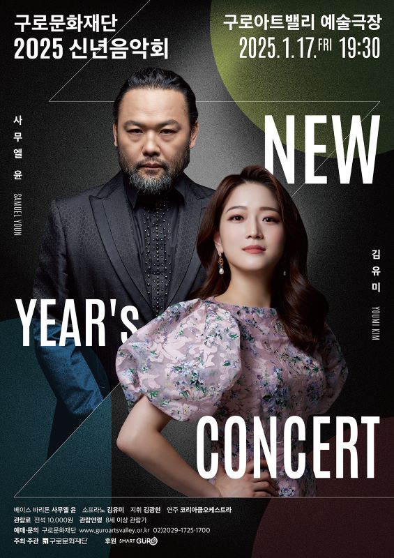 이번 신년음악회는 구로문화재단의 2025년 첫 기획공연으로, 푸른 뱀의 해를 맞아 새해의 희망과 도약을 기원하며 마련했다. 특히 이번 무대에는 세계적으로 주목받는 성악가 베이스 바리톤 사무엘 윤과 차세대 소프라노 김유미가 참여해 가곡과 오페라 아리아 공연을 펼칠 예정이다. 이들의 무대는 국내 최고 수준의 연주 실력을 자랑하는 코리아쿱오케스트라의 협연과 김광현 지휘자의 섬세한 지휘로 더욱 풍성하게 채워질 예정이다.