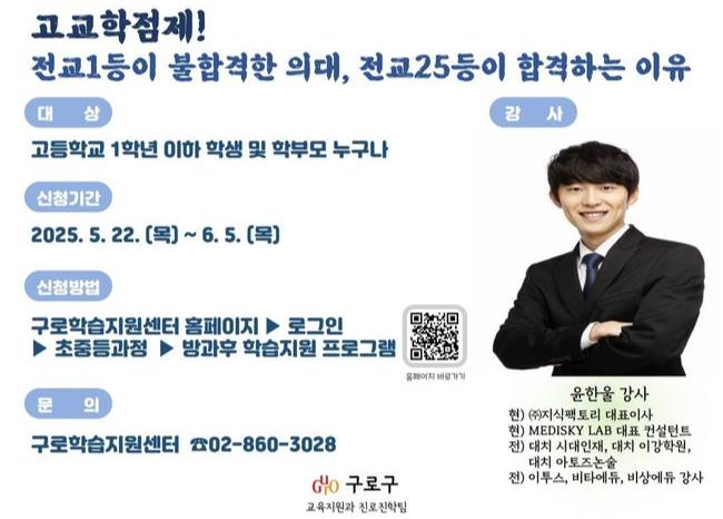 구로구가 오는 6월 10일 고등학교 1학년 이하 학생과 학부모를 대상으로 2028학년도 대학입시에 적용되는 고교학점제에 대한 정확한 정보와 전략을 안내하는 입시설명회를 개최한다고 밝혔다.