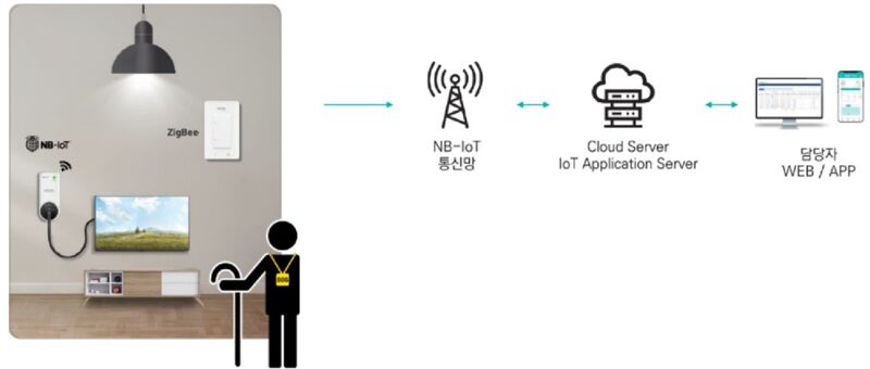 NB-IoT 기술은 별도의 인터넷 회선 없이도 작동 가능해 인터넷 환경이 열악한 독거 어르신 가정에도 쉽게 적용할 수 있는 장점이 있다. 이 콘센트에 연결된 가전제품의 전력 사용량과 사용 빈도를 분석해 대상자의 생활 유형을 이중으로 확인한다.