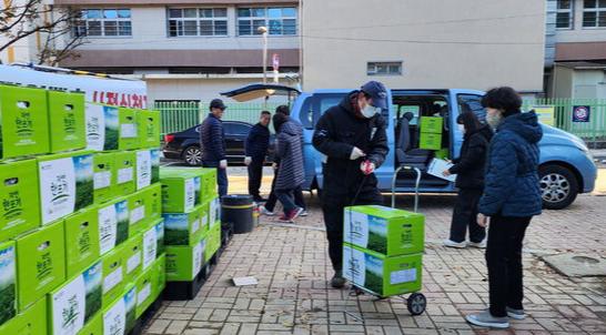 지난해 절임배추 직거래 행사에서 절임배추를 받고 있는  구로구 주민