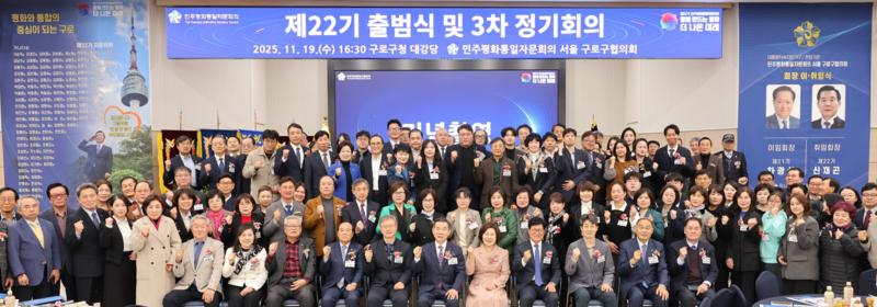 민주평화통일자문회의 서울 구로구협의회(회장 신재곤)는 지난 11월 19일(수) 구로구청 5층 대강당에서 ‘제22기 출범식을 갖고 이어 2025년 3차 정기회의’를 개최했다.