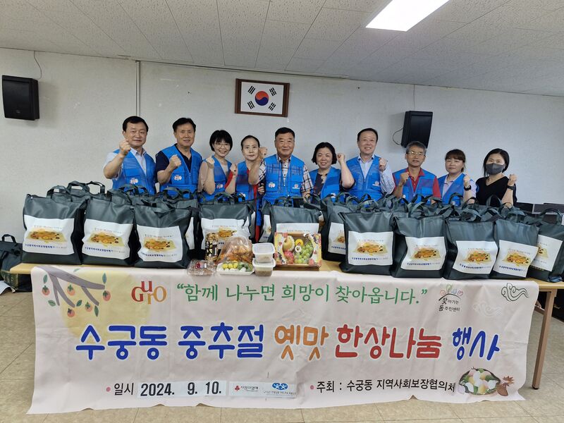 수궁동 지역사회보장협의체(위원장 동귀원)는 동주민센터(동장 이용호)와 협력하여 추석 명절 맞이 관내 저소득 가구를 위한 명절 음식 전달행사를 진행했다.