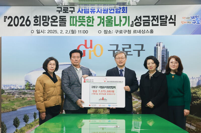 구로구(구청장 장인홍)가 지난 2일 구청 르네상스홀에서 구로구 사립유치원연합회(회장 조상수)와 함께 ‘2026 희망온돌 따뜻한 겨울나기 성금 전달식’을 개최했다.